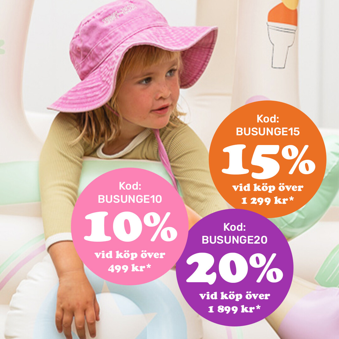 10% rabatt vid köp över 499 kr med kod BUSUNGE10 15% rabatt vid köp över 1 299 kr med kod BUSUNGE15 20% rabatt vid köp över 1 899 kr med kod BUSUNGE20