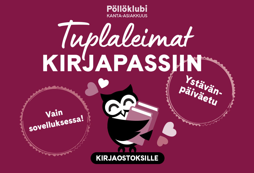 Ihanaa, ettÀ olet kirjojen ystÀvÀ! YstÀvÀnpÀivÀn kunniaksi tarjoammekin tuplaleimat Suomalaisen Kirjakaupan kanta-asiakassovelluksen kirjapassiin sunnuntaihin 15.2. saakka.