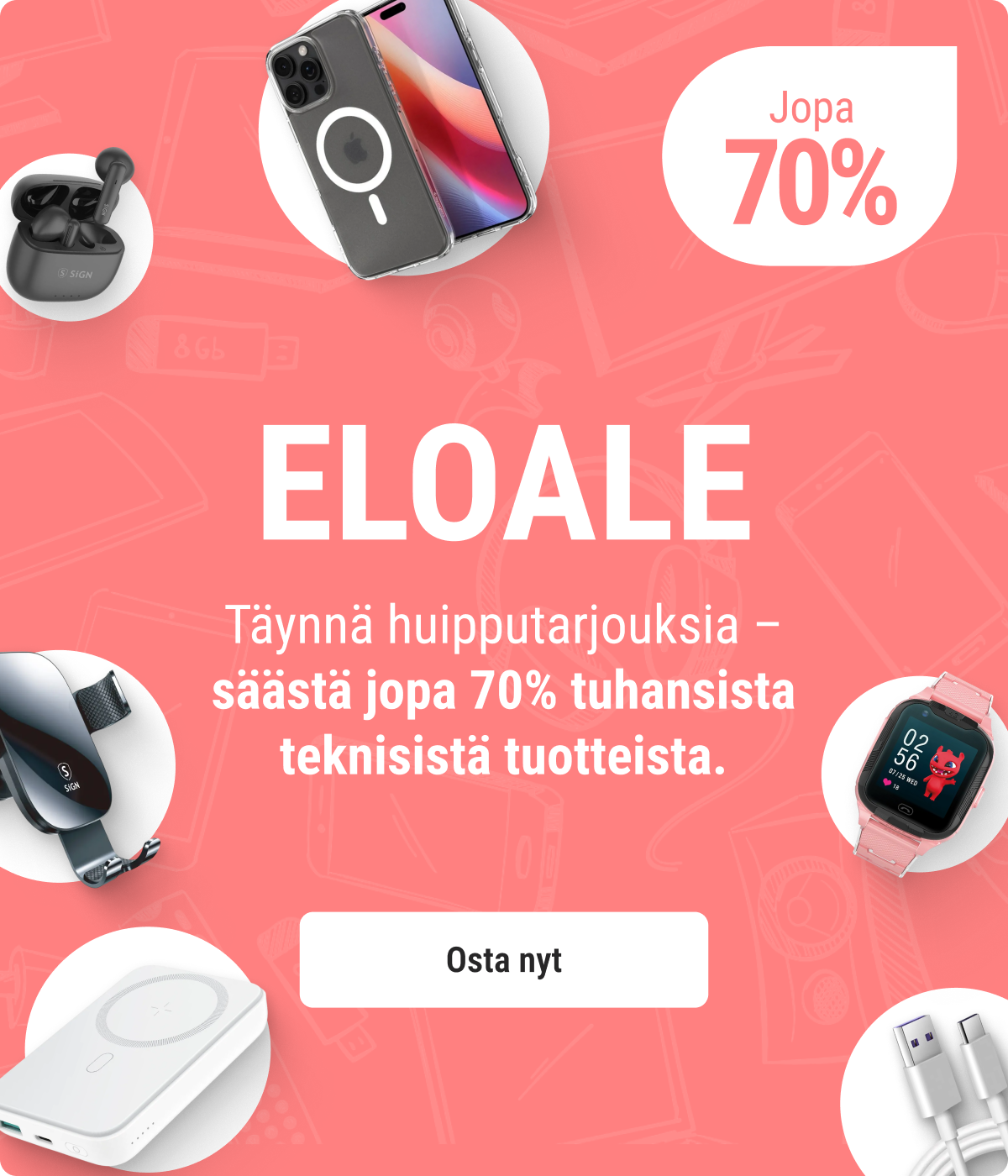 Tee kuten 1 000 000 muuta asiakasta, löydä kaikki matkapuhelimiin meiltä! Meiltä löydät edullisia tuotteita matkapuhelimiin, tabletteihin, älykotiin, pelaamiseen, äänentoistoon ja videoihin ja paljon muuta. Osta turvallisesti ja nopeasti, lähetämme vempaimet suoraan varastostamme.