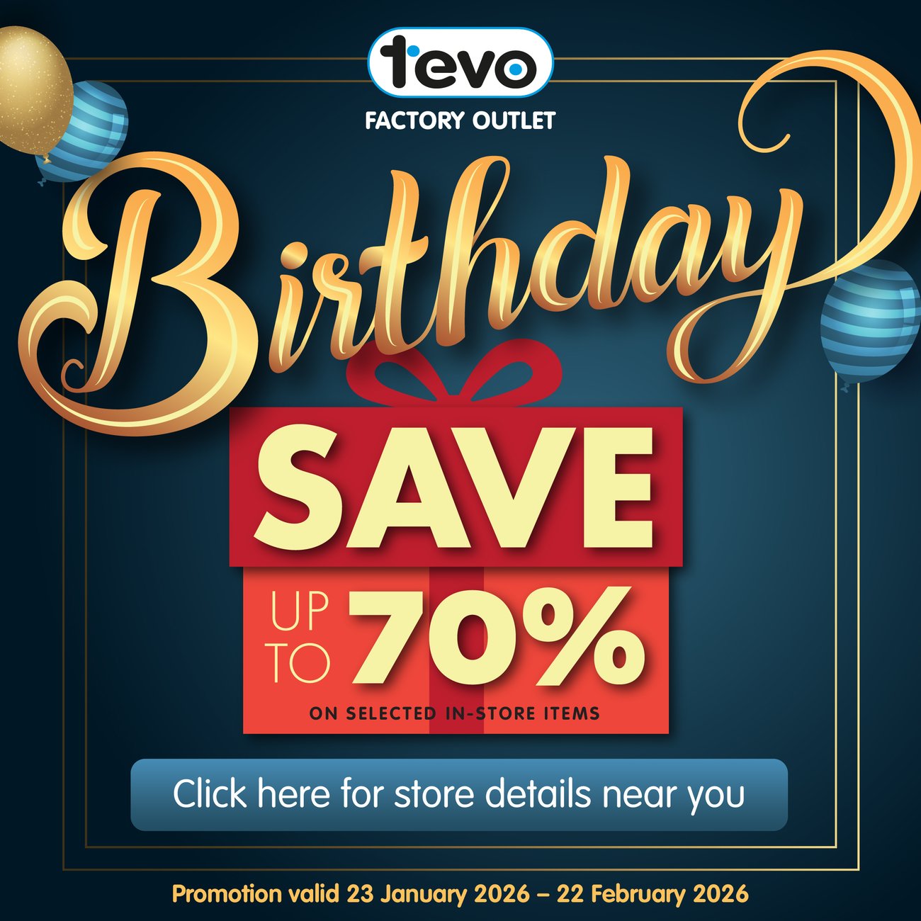 Step into your nearest Tevo Factory Outlet and enjoy.