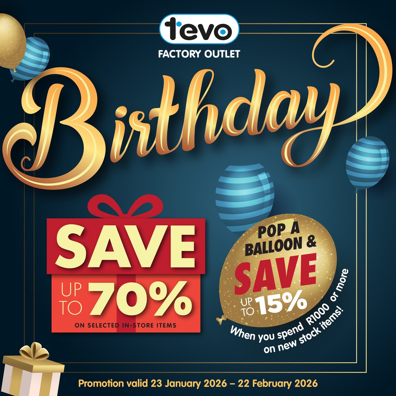 Step into your nearest Tevo Factory Outlet and enjoy.
