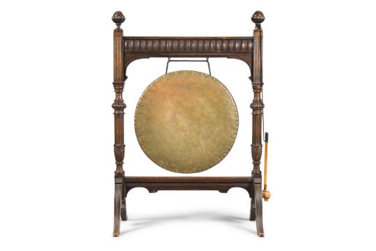 A Large Late Victorian Oak And Brass Dinner Gong Late…