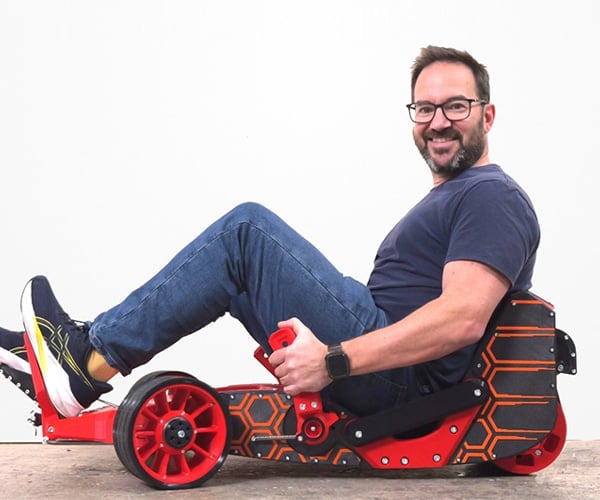 A while back, Ivan Miranda made a go-kart using 3D printed parts, but it wasn’t exactly packable, and Ivan wanted to travel with it. So he engineered a much smaller and lighter kart. The new, three-wheeled design is about 1/3rd of the heft of the original, and still quite zippy. The first version was too […]