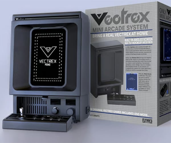 The legendary Vectrex vector-graphics console is back as the Vectrex Mini, a half-scale, modernized homage with a 5-inch AMOLED screen, Bluetooth analog controller, HDMI output, and SD slot for adding more games. The system includes 12 classics like MineStorm II, Spike, and Bedlam, complete with colorful overlays that recreate the aesthetic of the original.