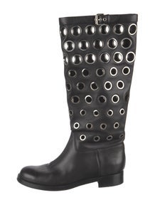 Leather Eyelet Trim Riding Boots