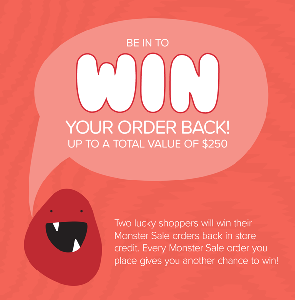 Plus every order you make gives you another entry to WIN the value of your orders back to a total value of $250! See details below.
