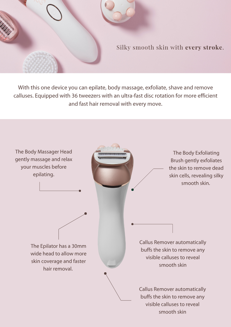 You can get the Perfect Skin Epilator for only $59.99. But that’s not all, you’ll receive 4 additional attachments: massager, exfoliator, callus remover, and shaver, PLUS accessories.