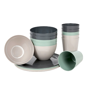 Kunststoff, mikrowellen-, gefrier- und spülmaschinengeeignet, 6 Schalen ca. Ø 14 cm, 6 Becher ca. 500 ml oder 6 Teller ca. Ø 25 cm
