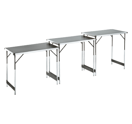 4-fach höhenverstellbar, Alu-Rahmen mit Kunststoffecken, 3 Tische à L 100 x B 60 cm