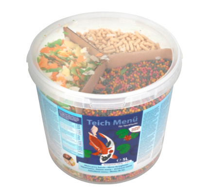 Alleinfuttermittel für Teichfische, Granulat, Sticks und Flocken, 5 Liter