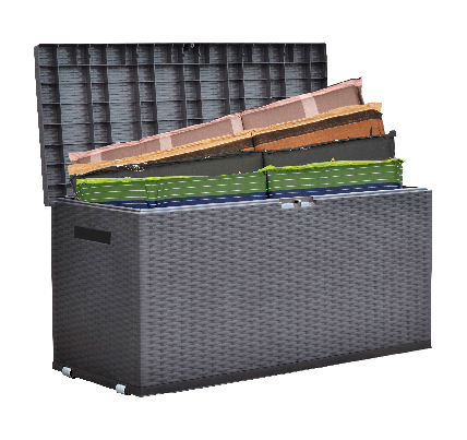 Geflechtoptik, Kunststoff, 2 integrierte Rollen, ca. 370 Liter, L 120 x B 52 x H 60 cm