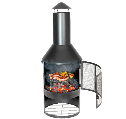hoher Schornstein, großer Feuerraum, pulverbeschichtetes Metall, inkl. Grillrost, ca. ø 45 x H 134 cm