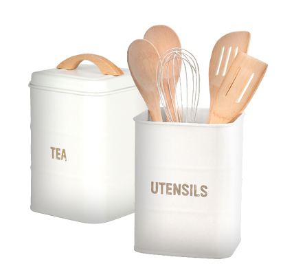 Metall und Bambus, weiß oder grau, versch. Ausführungen, z.B. Utensilienbecher, ca. B 11 x H 14 x T 11 cm
