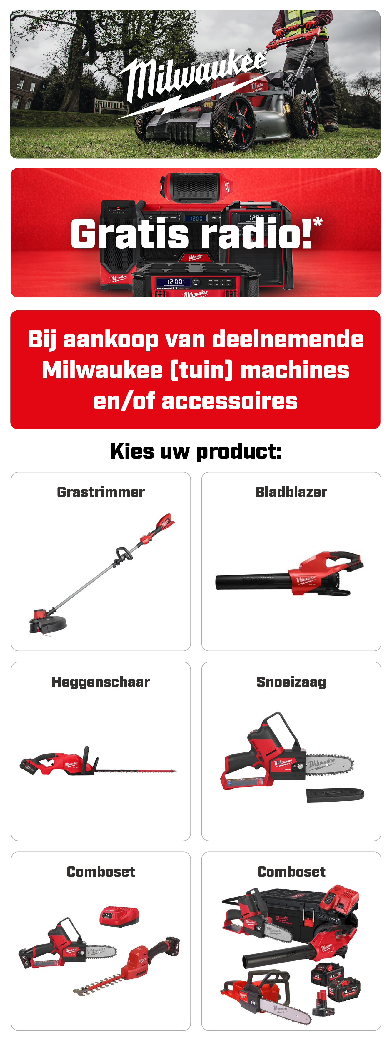 📻 Gratis Milwaukee radio bij tuinmachines!