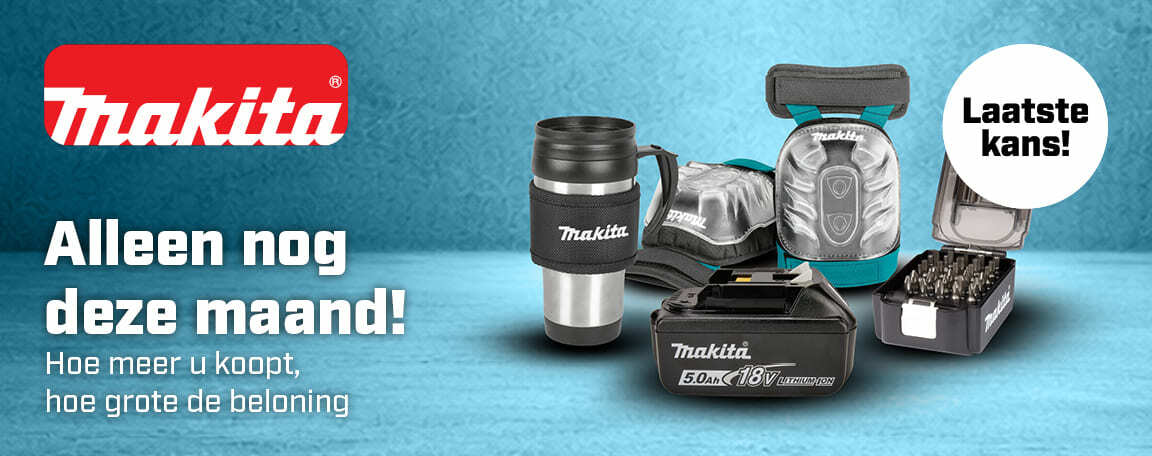 *Hoe hoger het aankoopbedrag, hoe groter het cadeau. Deze actie geldt voor het volledige Makita assortiment, inclusief (accu)machines, tuingereedschap, opbergsystemen en accessoires. Kortom, alles van Makita doet mee! Combineer uw favoriete Makita producten en ontvang een cadeau. Mis deze unieke kans niet en profiteer nu!
