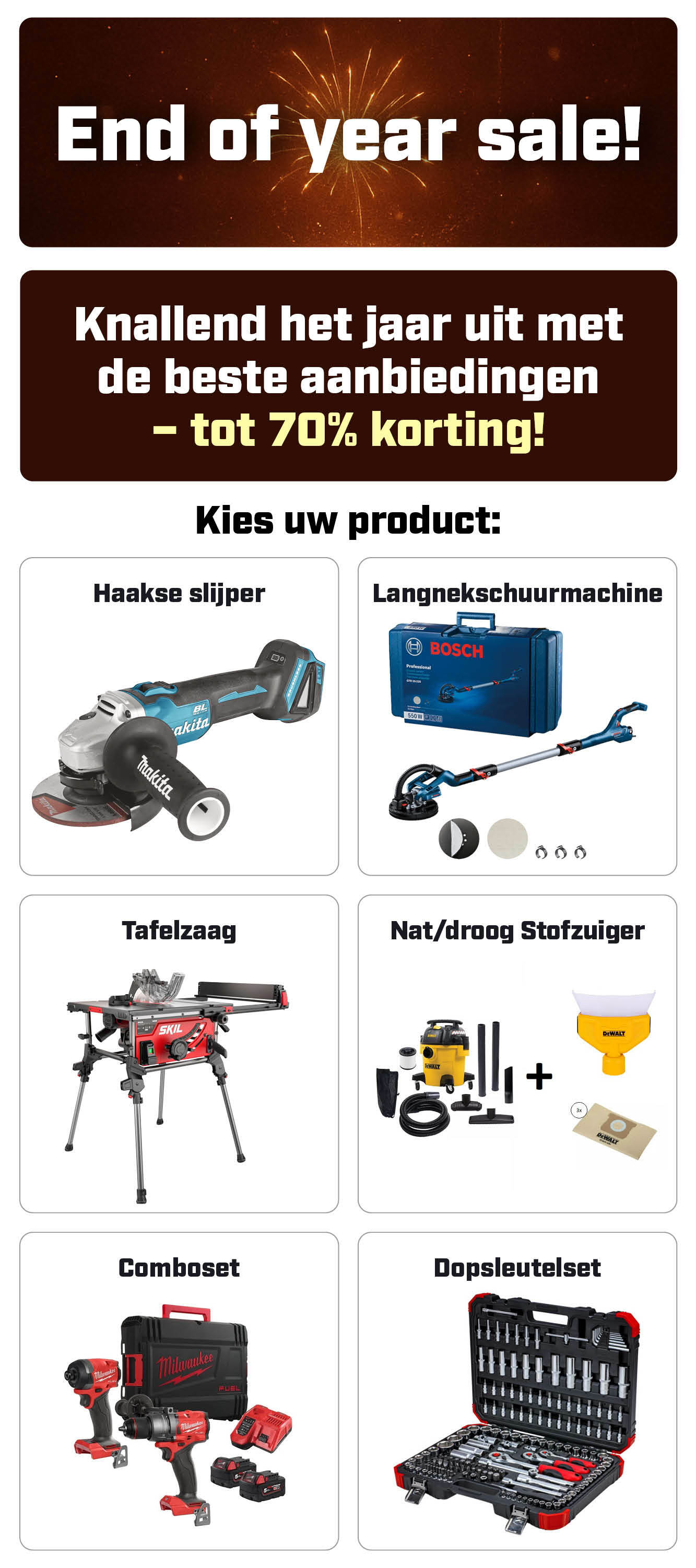 ⏰ Nu of nooit! Tot 70% korting op topgereedschap