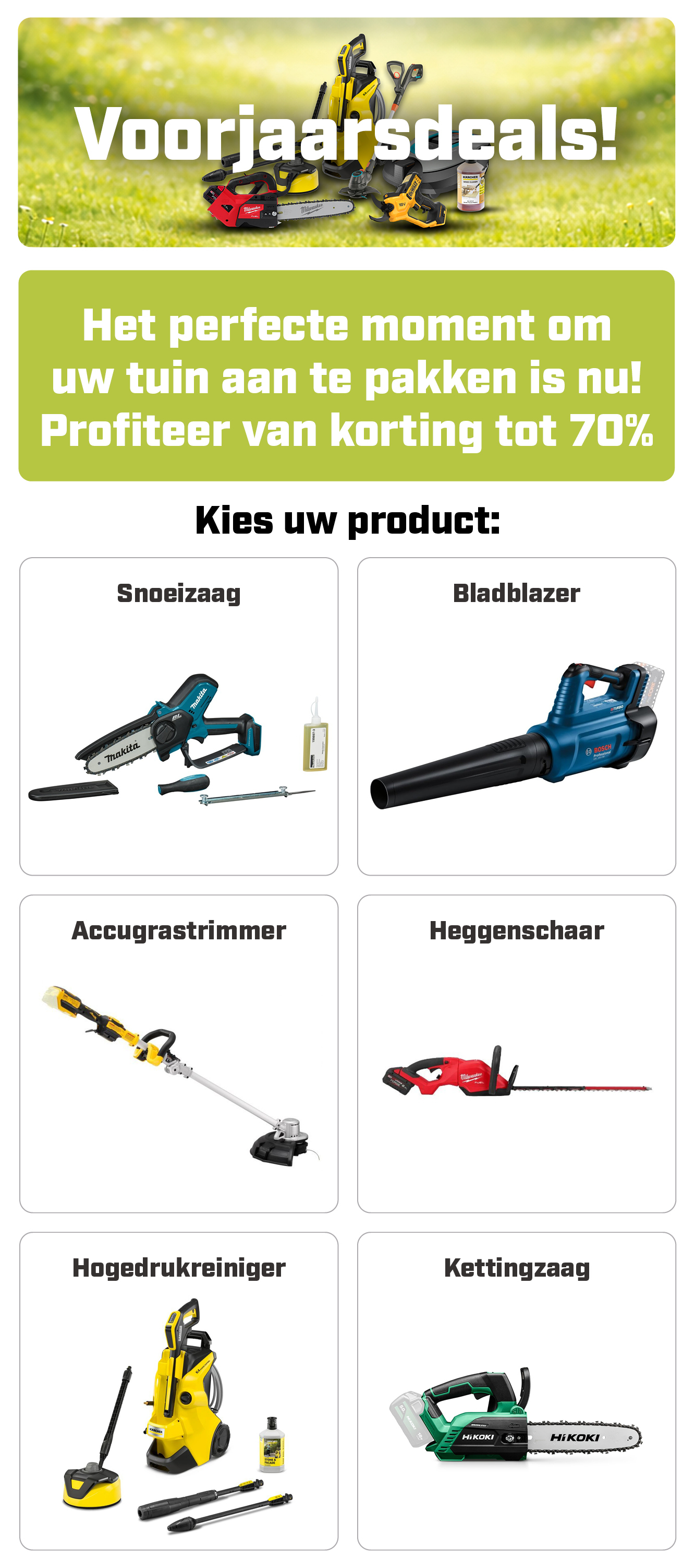🌿 Voorjaarsdeal: tot 70% korting op tuinmachines!