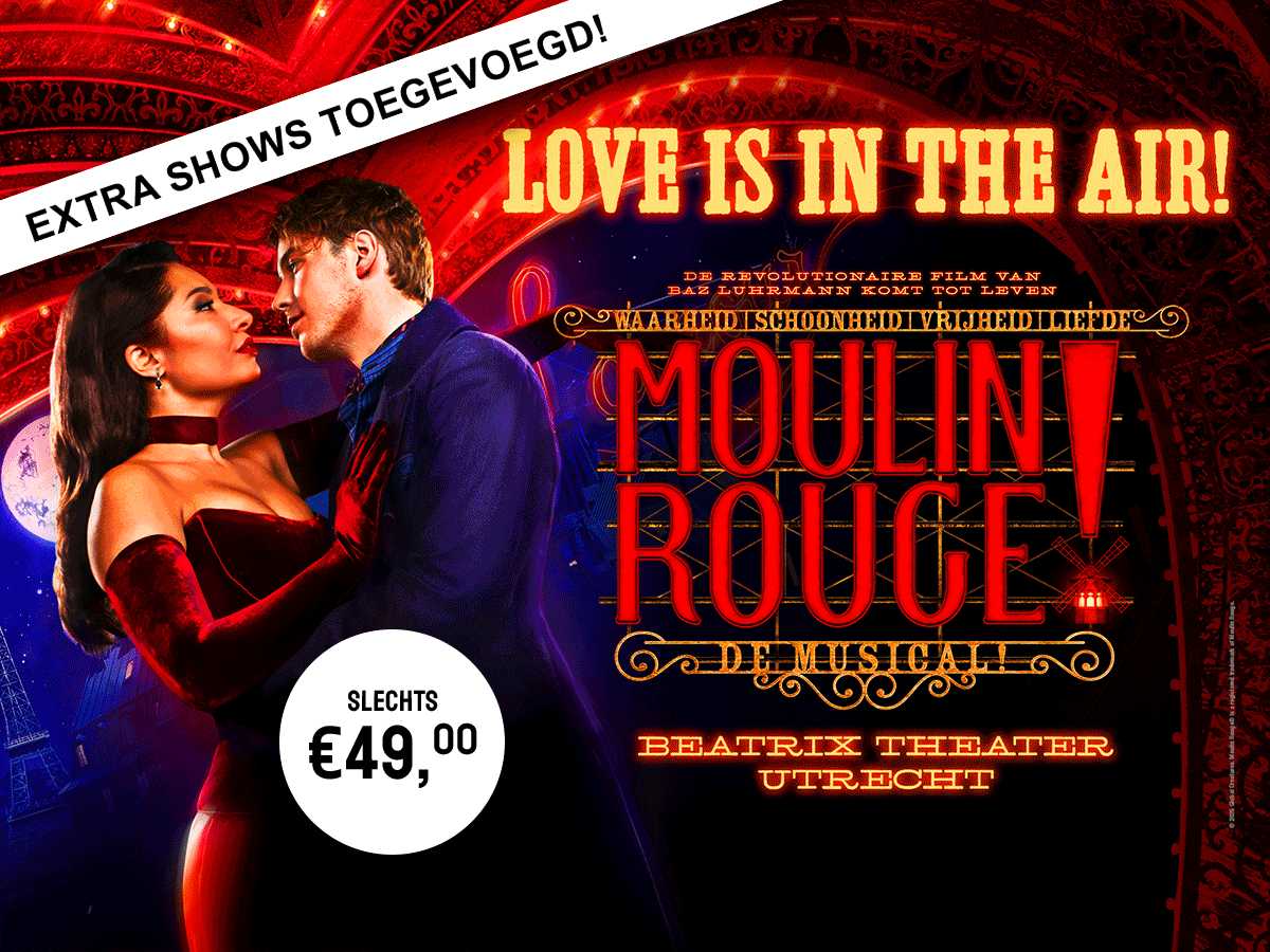 Moulin Rouge! De Musical in het Beatrix Theater betovert met glitter, passie en spektakel. Nu tijdelijk: last-minute tickets met 45% korting. Boek snel en beleef het zelf! ✨