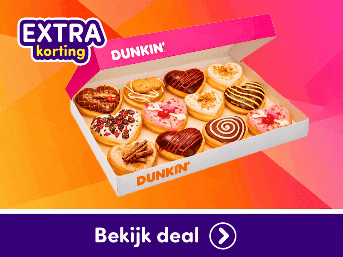 Vandaag is het raak! De Dunkin’ Valentijn Box is dé dagpakker. Trakteer jezelf of iemand anders op deze heerlijke donutbox. Alleen vandaag: éxtra korting!
