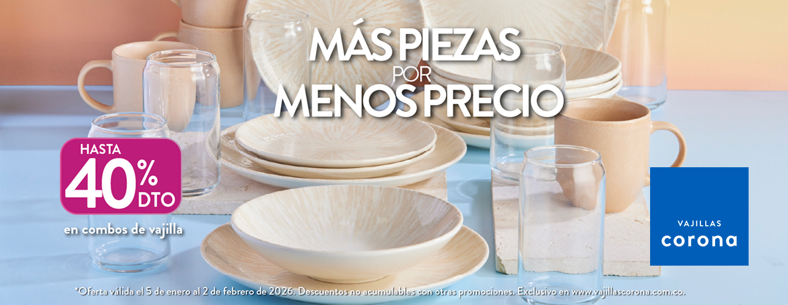 Más platos, más tazas, más momentos… por menos precio. >>>>>>> ¿Necesitas ayuda o asesoría con tu compra? Estamos aquí para ti. Escríbenos al WhatsApp 320 840 6366 o al correo servicioalclientems@corona.com.co |