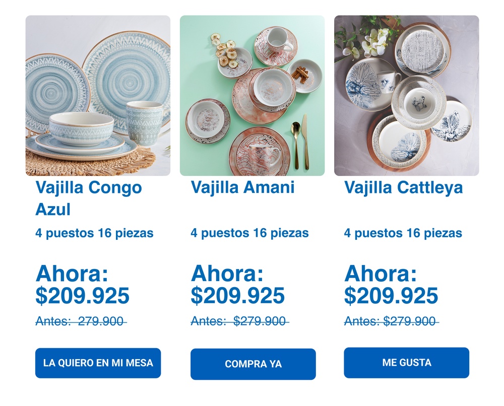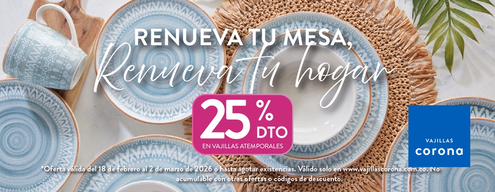 Diseños que transforman tu mesa. Aprovecha esta oferta por tiempo limitado. >>>>>>> ¿Necesitas ayuda o asesoría con tu compra? Estamos aquí para ti. Escríbenos al WhatsApp 320 840 6366 o al correo servicioalclientems@corona.com.co?