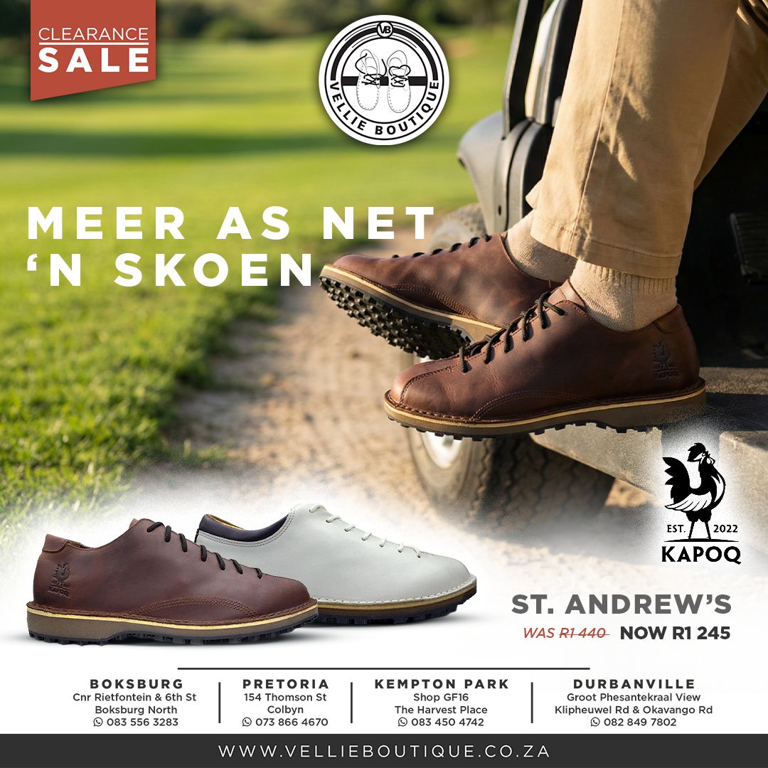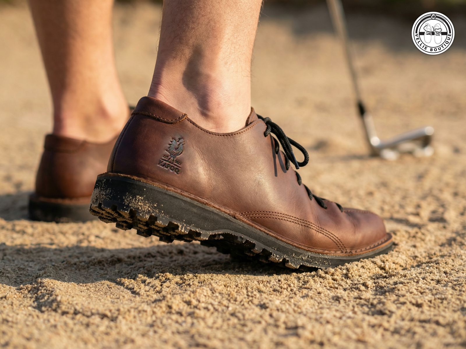 Handcrafted in South Africa from 100% premium bovine leather, the KapoQ Golf Veldskoen is lightweight, breathable, water-resistant, and designed with a wide fit for maximum comfort.