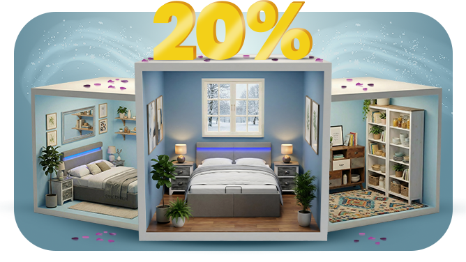 Creëer een rustige slaapkamer met praktische meubels voor dagelijks comfort. Kies 2 essentiële items en krijg 20% korting voor betere rust thuis