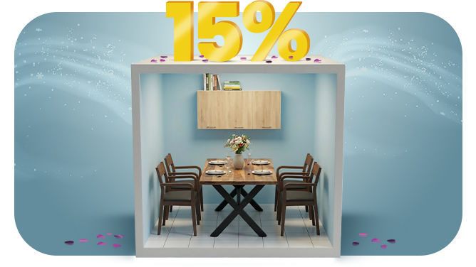 Geniet van een eethoek met tafels en stoelen die het gezin samenbrengen. Kies 2 eetkamermeubels met 15% korting voor comfortabelere maaltijden.
