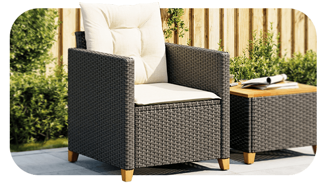 Enjoy comfort wherever you sit. Folding, swivel, cushioned rattan, bar stools, and classic wooden chairs adapt to your outdoor space while making meals or relaxation more enjoyable.