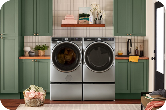 §Ends 4/29/2026 at 11:59 PM EST. Availability of delivery, install & haul-away services vary by location—see checkout for services available to you. Excludes ground shipped products. Dollar threshold based on sale price of in-home delivery products excluding taxes, delivery, install/uninstall, and haul away. Only valid for new orders on whirlpool.com. Offer subject to change. No cash value. Major appliances limited to washers, dryers, refrigerators, ranges, cooktops, wall ovens, microwaves, dishwashers, hoods, beverage & wine centers, ice makers and compactors. While supplies last.