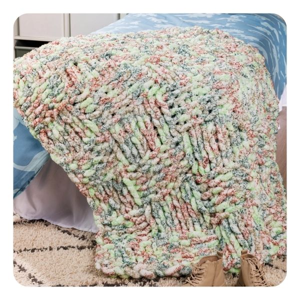 Introducing Bernat® Blanket Extra Thick Frosting™, a yarn that’s as sweet as it sounds! With deliciously soft texture and creamy colorways inspired by your favorite frosted treats, this jumbo chenille yarn makes ultra-plush blankets, oversized accessories, and snuggly home décor in no time.