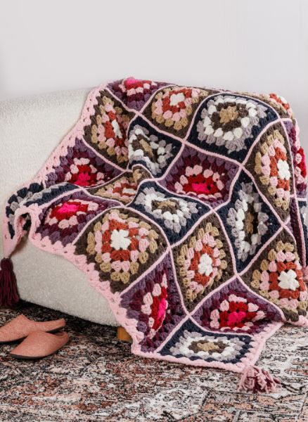 Get cozy with this plush blanket using the Bernat® All-in-One™ Blanket Granny™. This blanket is sure to add a bright pop of comfort to your home.